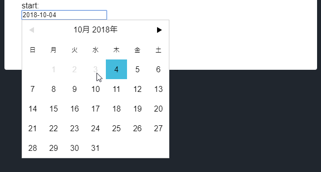 vuejs-datepickerで日付の選択できる期間を制限する方法です。簡単なサンプルがあります。